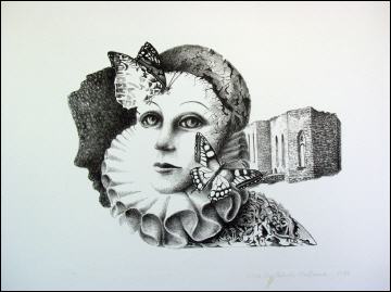 Im Bergell, der ursprünglichen Heimat der Künstlerin, tront über Casaccia die Ruine der großen Wallfahrtkirche zu San Gaudenzio. Olga Rusterholz erinnert mit diesem Exponat an die Vergänglichkeit und Zerbrechlichkeit des Menschen. Dennoch wird die Schwere der Thematik mit den leichten Flügelschlägen der Schmetterlinge aufgehoben.