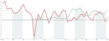 Die islamische Revolution im Iran (1979) führt zu einer Explosion des Ölpreises. Gleichzeitig erhöhen die USA die Leitzinsen, um die Inflation zu bekämpfen. Das Zusammenfallen dieser beiden Faktoren reisst die gesamte Weltwirtschaft in die Tiefe – mit ihr die Schweiz, wo das BIP 1982 wiederum schrumpft.