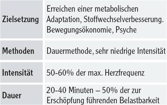 Die Belastung findet dabei bei ausreichender Sauerstoffversorgung (= aerob) ohne energetische Ermüdung statt.