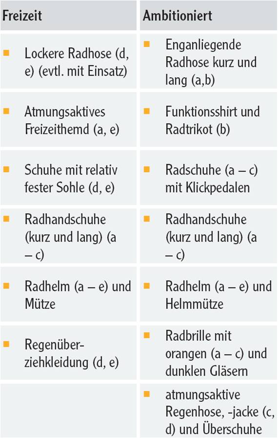 Für unterschiedliche Alltagsradfahrer können folgende Empfehlungen gegeben werden. Es sollte darauf geachtet werden, dass die Wochenendtour eine bestimmte Länge und Intensität hat. Die unten angegebene Länge der Wochenendtouren sind zum einen als Beispiele zu verstehen und können zum anderen nach den oben genannten Prinzipien mit steigender Leistungsfähigkeit bzw. Trainingszustand gesteigert werden. Der angegebene Kalorienverbrauch ist die Summe aller Belastungen über eine Woche Radfahren mit den angegebenen Umfängen. Die Werte können jedoch je nach Körpergewicht und Intensität schwanken. Ziel sollte es jedoch sein, um für die Gesundheit einen optimalen Effekt zu gewinnen, aus der Alltagsnutzung und den Freizeitaktivitäten einen Verbrauch von ca. 1600 – 2000 kcal zu erreichen.