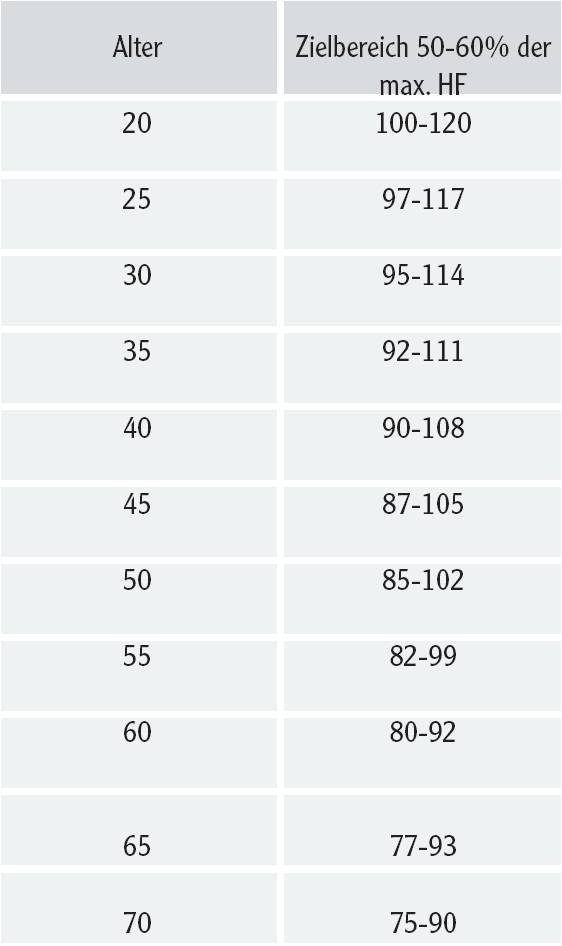 Maximaler altersbezogener Puls: 220 - Lebensalter