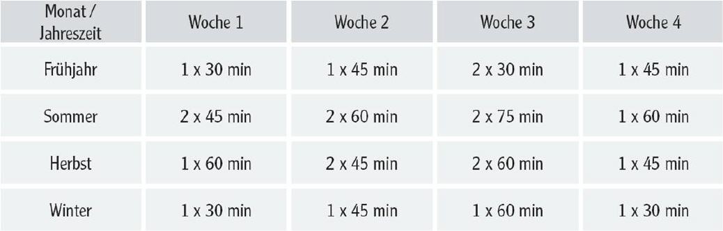 Strebt man eine grundsätzliche und nachhaltige Verbesserung der Leistungsfähigkeit an, ist es sinnvoll die Planung nach Perioden vorzunehmen und entsprechend der Jahreszeit das Training zu variieren.